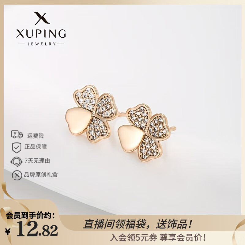 XUPING旭平首饰时尚气质高级四叶花耳钉送女朋友送女士生日礼物X000657832 四号色