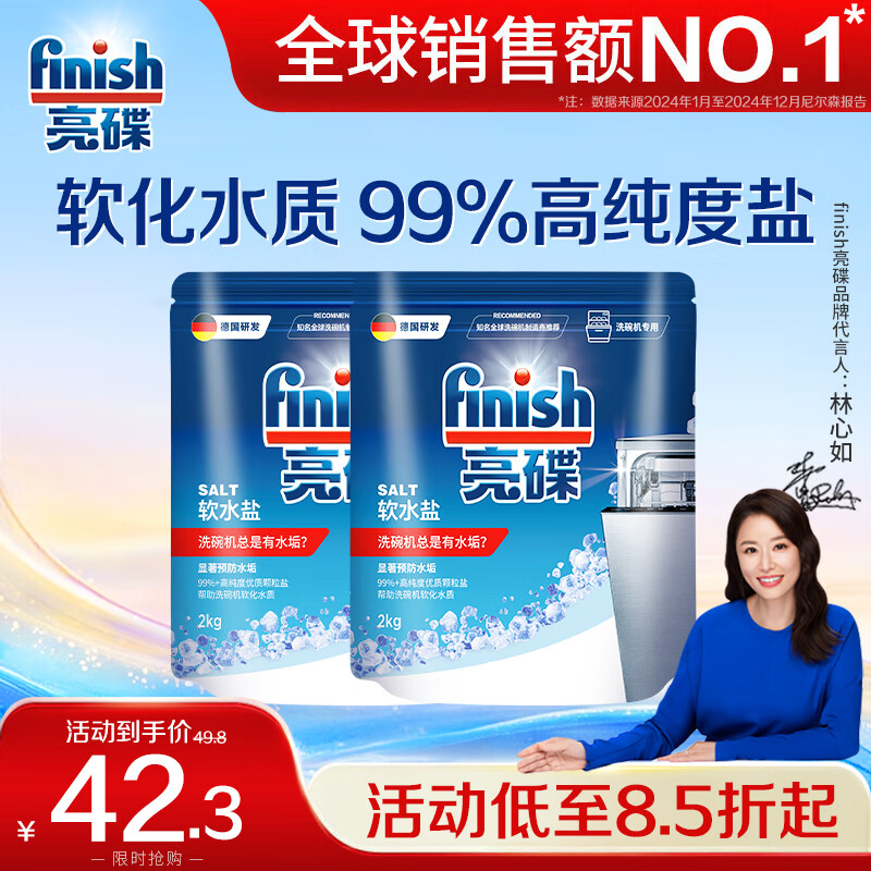 亮碟 洗碗盐清洁剂洗碗机专用软水盐预防水垢延长洗碗机寿命2kg 软水盐*2 软水盐2kg