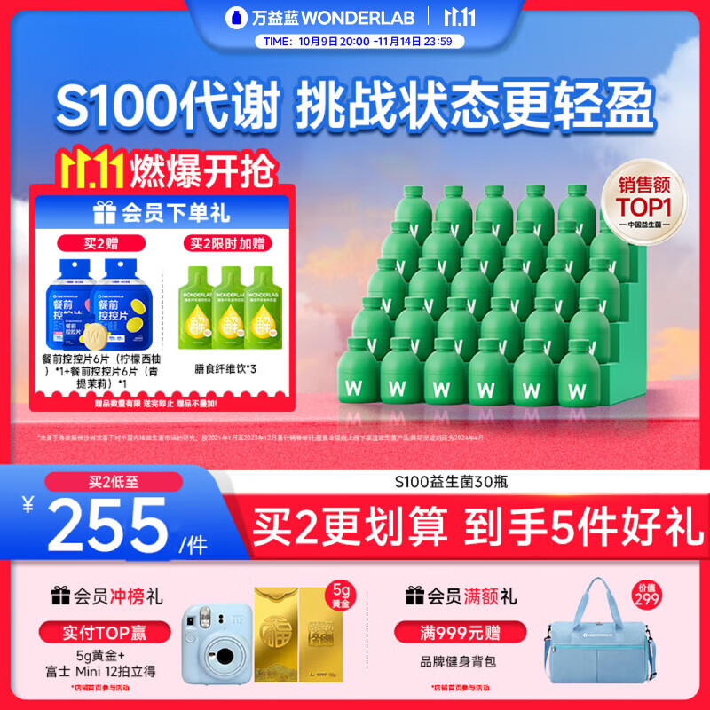 万益蓝WonderLab S100益生菌益生元静燃素代谢菌男女 30瓶