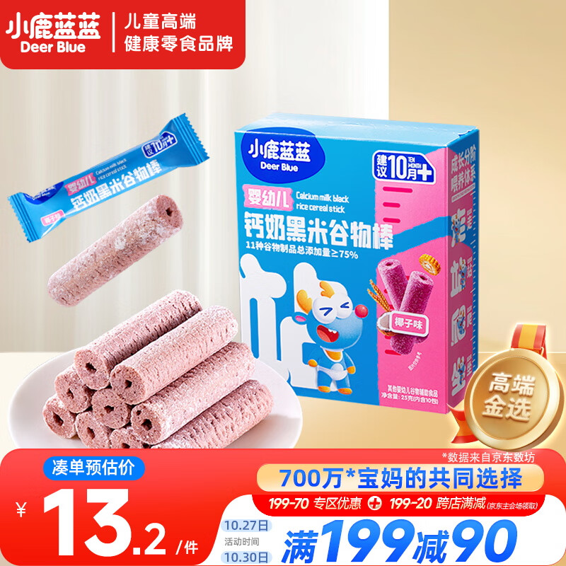 小鹿蓝蓝热门商品婴幼儿钙奶黑米谷物棒宝宝零食磨牙米饼泡芙饼干25g10月+