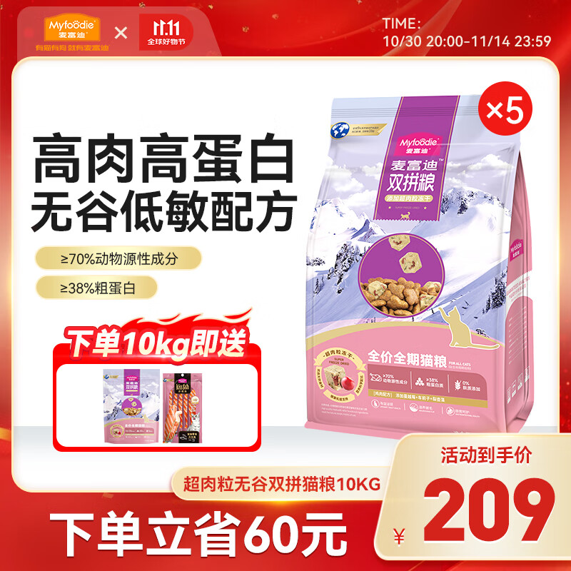 麦富迪 猫粮 新升级超肉粒无谷冻干双拼粮全价高蛋白成幼猫通用 【新升级】鸡肉配方10kg