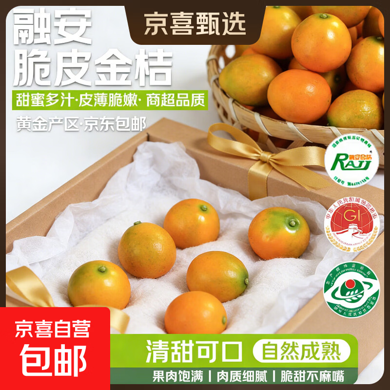 广西脆皮金桔融安滑皮金柑新鲜水果礼盒年货送礼物脆甜源头直发 【6号小小果】| 4g+ 3斤(力荐)