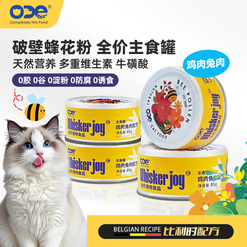 O.D.E破壁蜂花粉全价猫主食罐鸡肉乳鸽鸡肉兔肉营养美毛湿粮ODE 破壁蜂花粉鸡肉乳鸽85g*4
