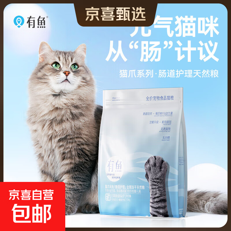 有鱼(YOOIU)冻干双鲜猫粮幼猫小猫咪成猫增肥肠道护理营养通用全价猫粮 【有鱼肠道护理】试用装40g*2包