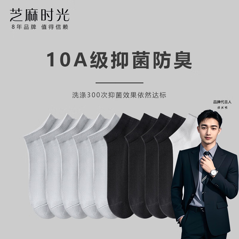 芝麻时光精梳棉 网眼透气10A抗菌防臭袜子男袜短筒男士防臭船袜精梳棉 混色随机 10双 均码 【38-43码】