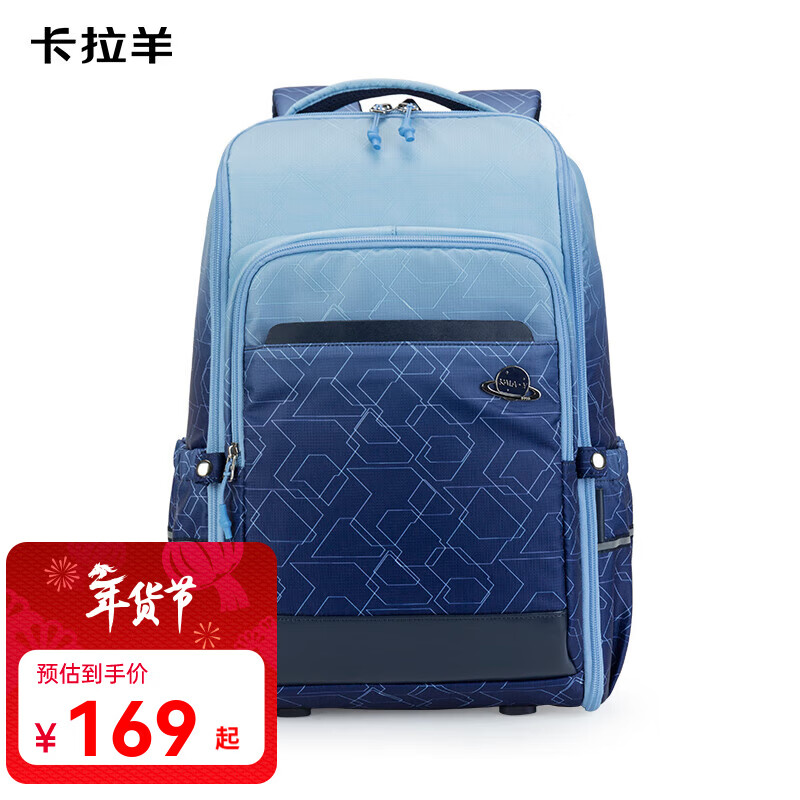 卡拉羊中学生书包男女一体式可打开初高中生减负背包旅行出游双肩包 藏青科幻【抑菌里布】