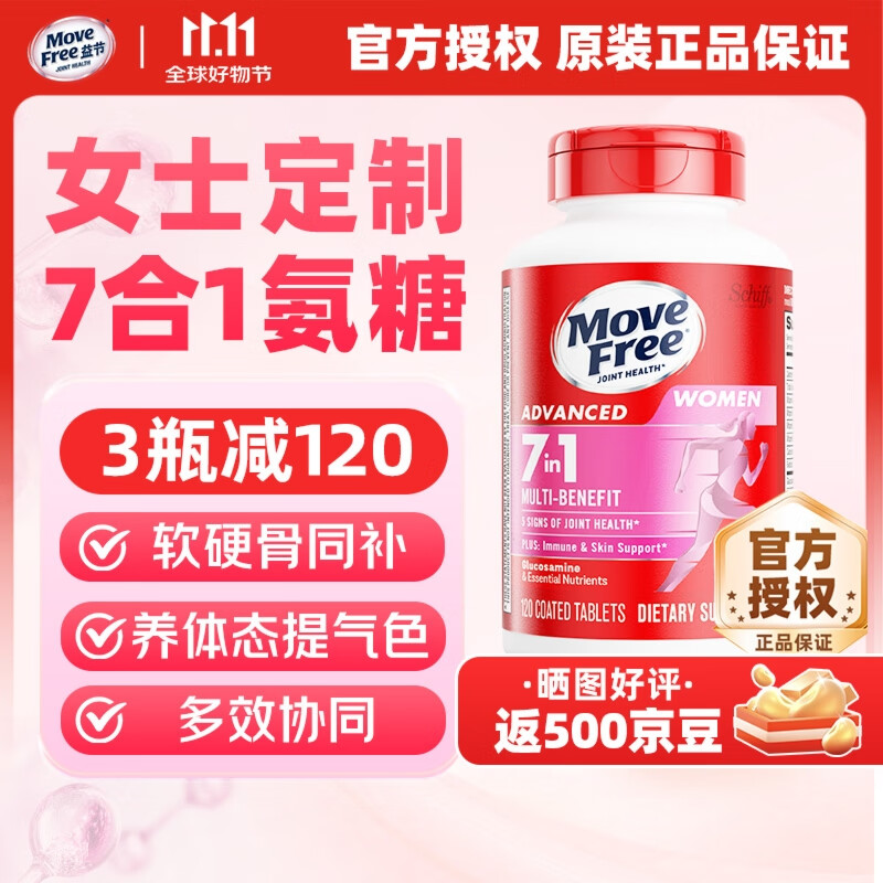 益节(Move Free)女士男士氨糖软骨素120粒 美国原装进口维骨力 成人营养品维生素 【专属养护】女士氨糖120粒