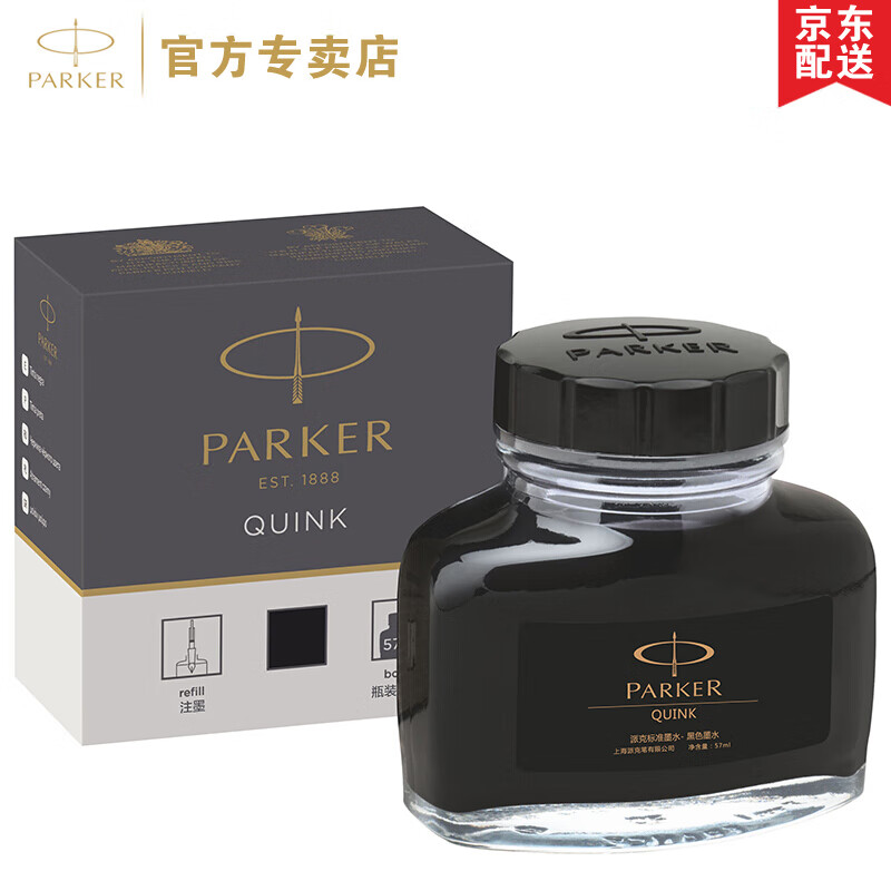 派克(PARKER) 墨水 派克钢笔水 不堵塞笔尖 非碳素墨水 迷你小墨水 【纯黑色-57ML】闪电发货
