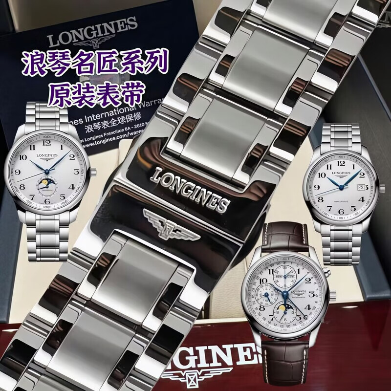 适配浪琴表带原装款钢带L2名匠月相精钢蝴蝶扣军旗律雅瑰丽心月男 【银色】 L2.909钢带 21mm银色