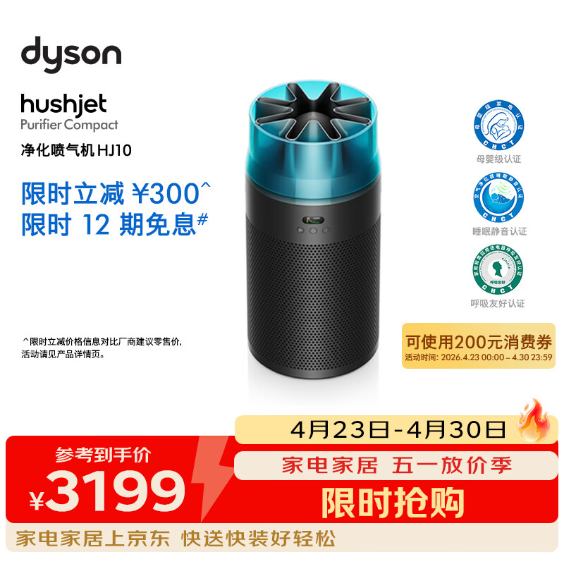 戴森(DYSON)净化喷气机HJ10 空气净化器 过滤病毒 除甲醛除PM2.5 母婴级认证 睡眠静音认证 呼吸友好认证 黑色