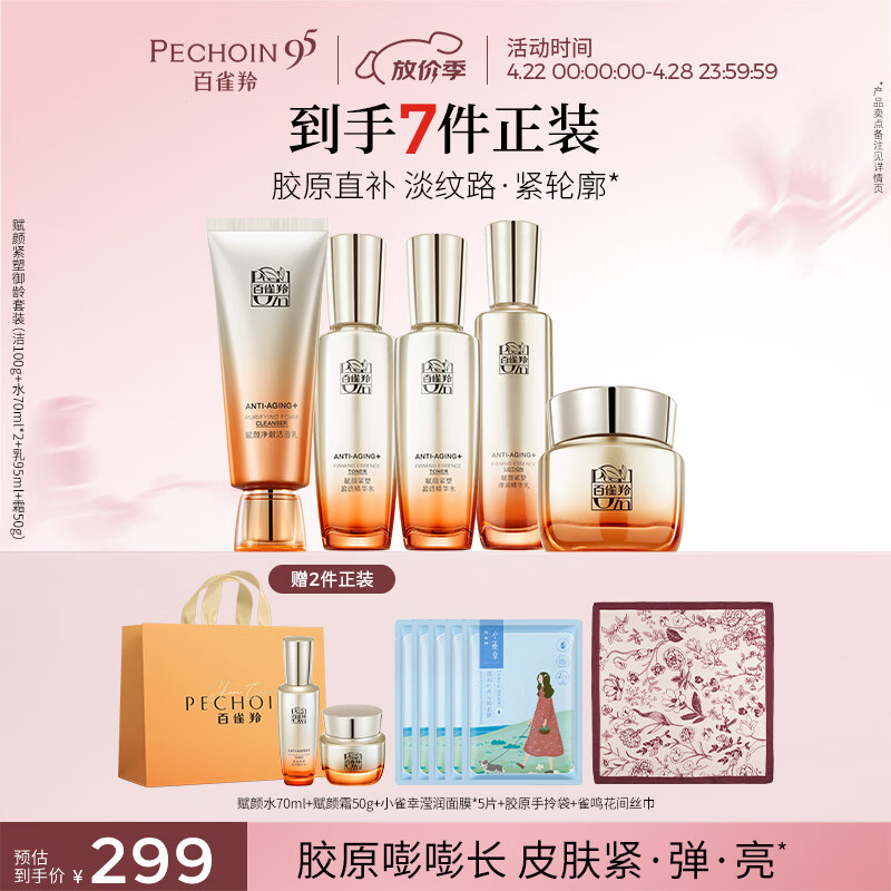 百雀羚御龄套装洁水水乳霜胶原紧致抗皱淡纹送女友母亲节礼物