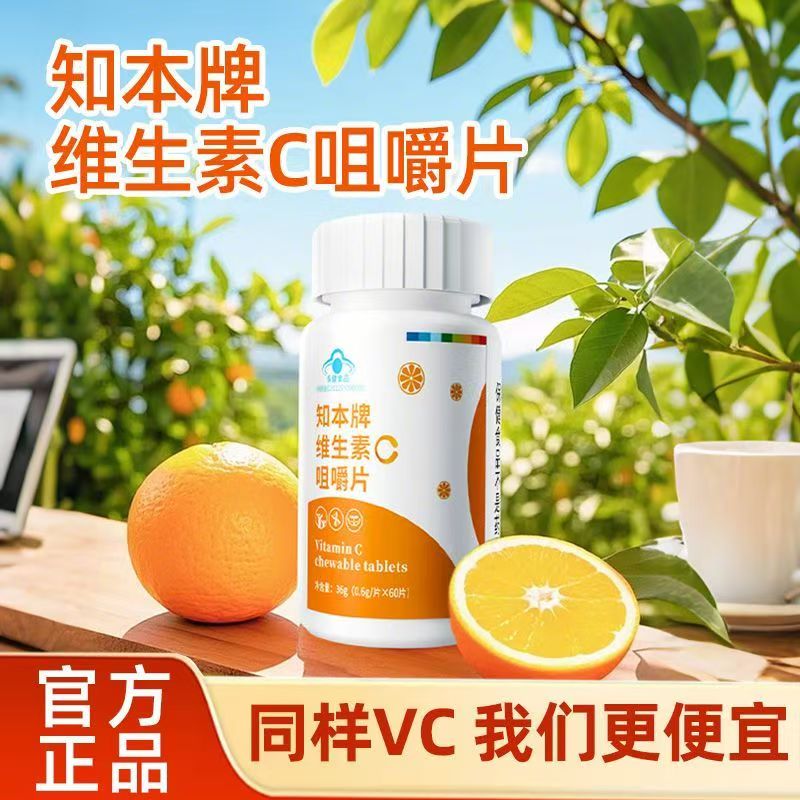 知本维生素C片咀嚼片香橙水果VC抗氧化美白成人中老年提升免疫力营养 维生素C 3瓶180片