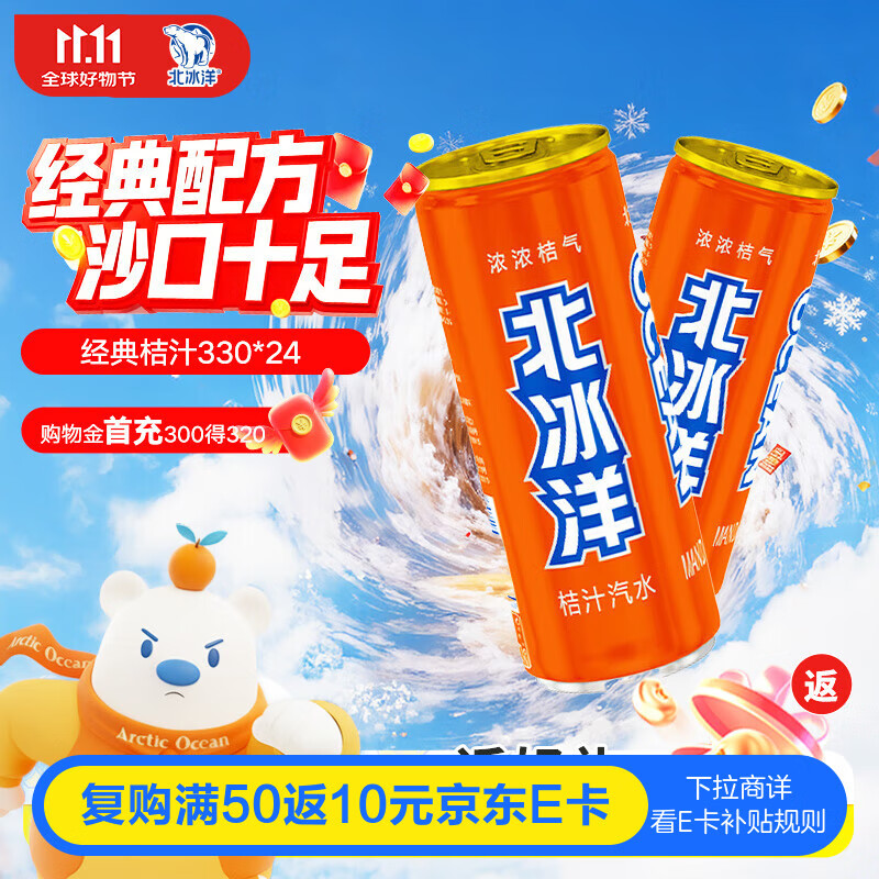 北冰洋 桔汁汽水330ml*24罐 果汁碳酸饮料整箱