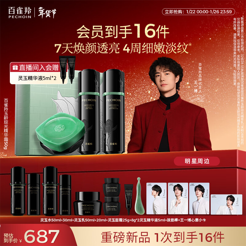 百雀羚(PECHOIN)灵玉水100ml+乳100ml+灵玉面霜50g保湿新年礼盒