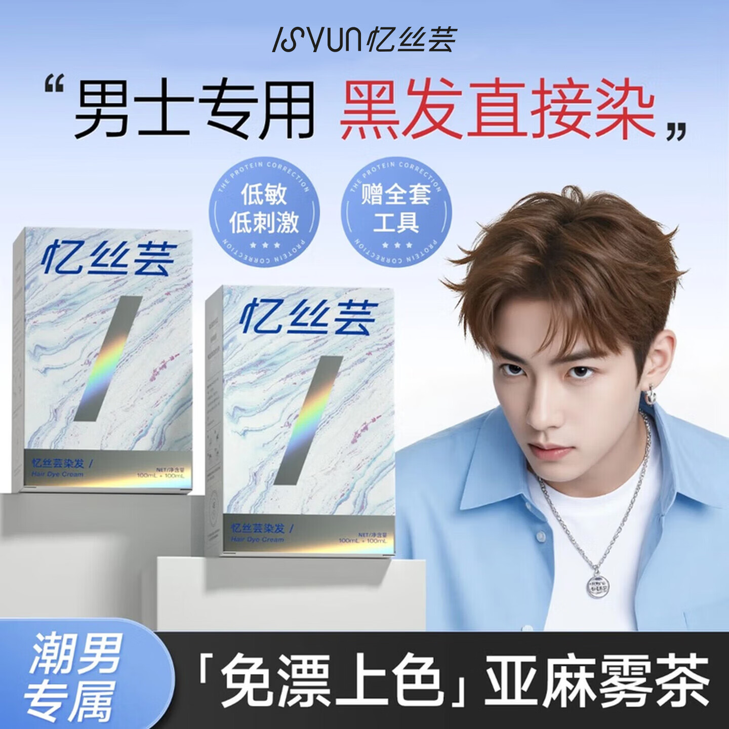 忆丝芸染发膏男士专用亚麻雾茶植物染发剂自然纯纯自己在家染发