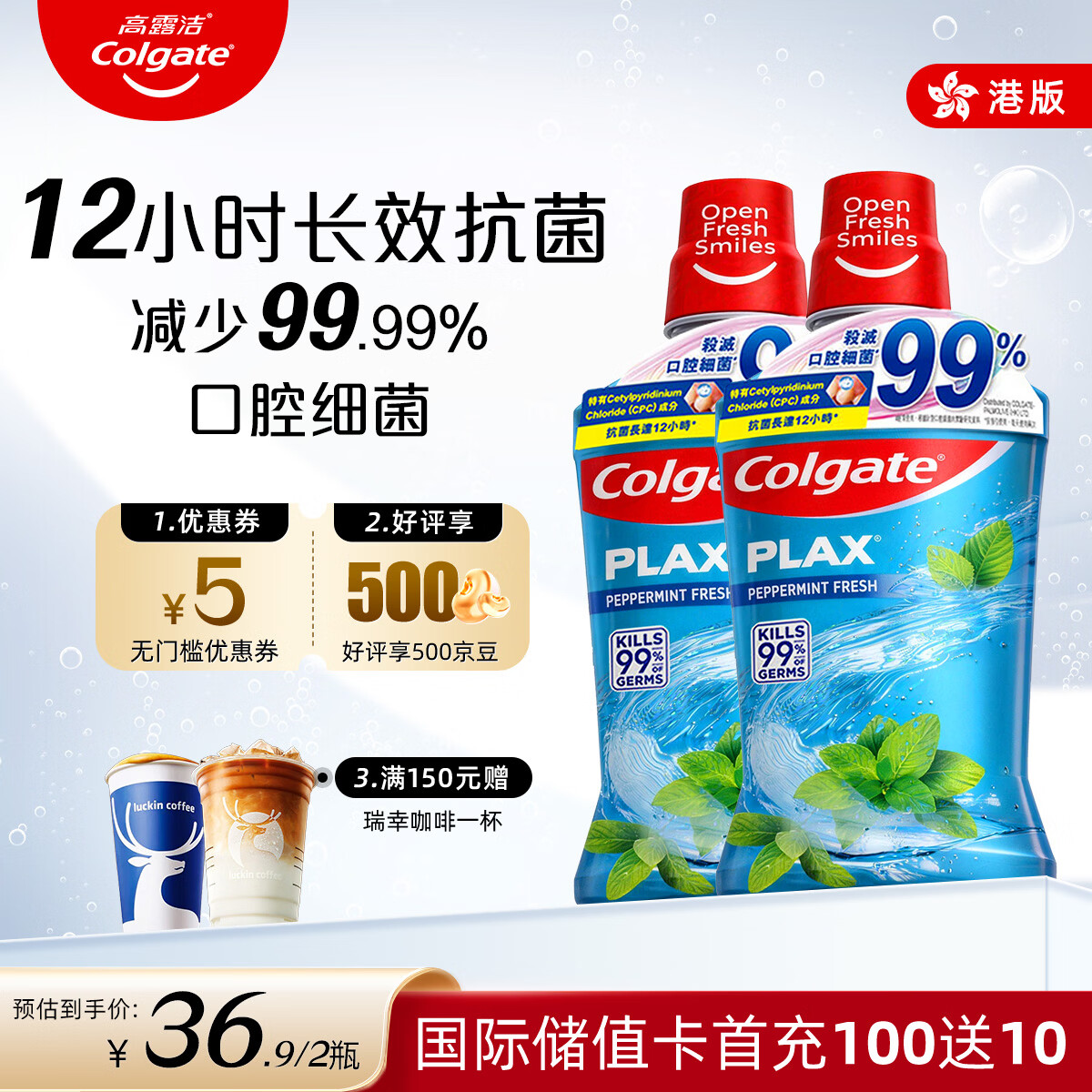 高露洁(Colgate)Plax贝齿含氟漱口水薄荷味口腔护理防蛀孕妇可用京东自营500ml*2
