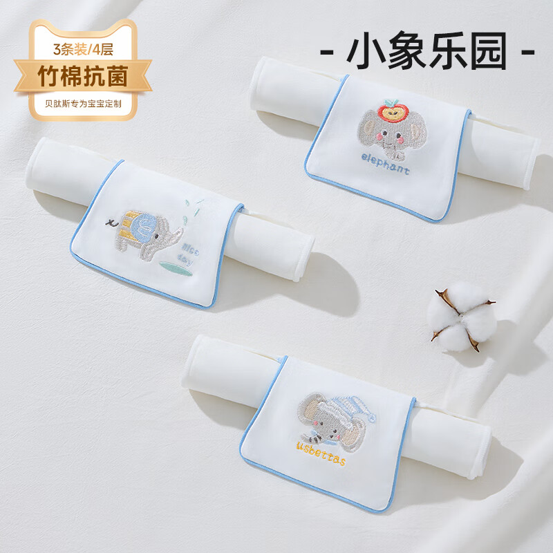 贝肽斯隔汗巾儿童吸汗巾纯棉垫背巾新生儿男女宝宝大号3条装 3条装 小象乐园 4层 【瞬吸干爽 10A抗菌】 S码【28*19cm】建议0-1岁