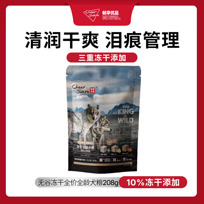畅享优品(Cheer Share)无谷高肉冻干犬粮 K系列低敏泪痕管理成幼大型小型犬金毛泰迪狗粮 尝鲜装208g
