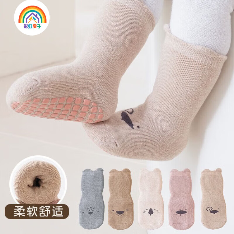 彩虹房子婴儿秋冬宝宝加厚保暖珊瑚绒袜中短筒袜0-3岁 加厚防滑袜女孩款随机 3双 1-3岁 (M) 【建议脚长11-13cm】