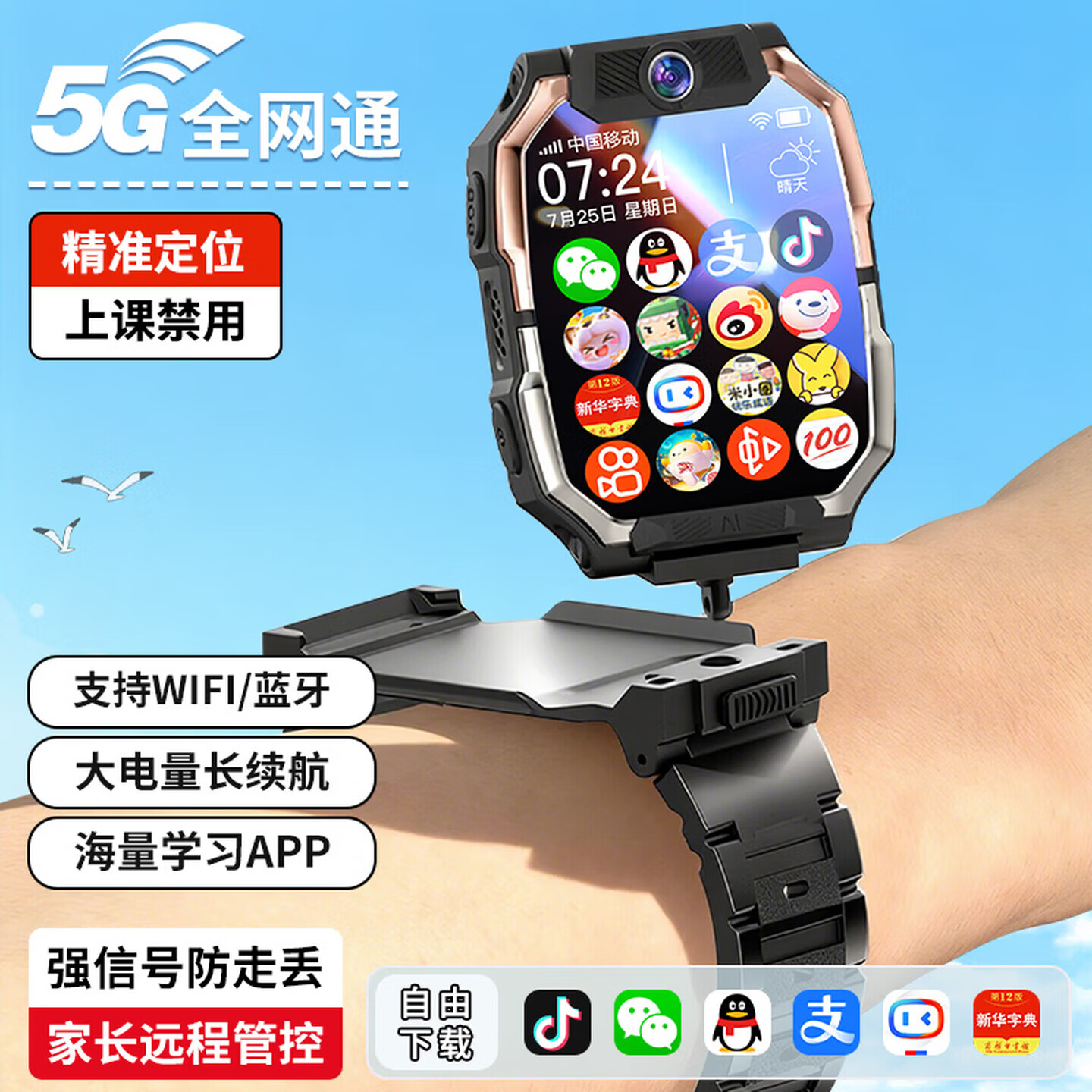 小天才酷盖5G智能儿童电话手表全网通前后双摄可翻盖视频通话GPS北斗精准定位插卡防水中小学生高中生Z6Z8Z11 至尊黑-128G内存+微信抖音+WiFi