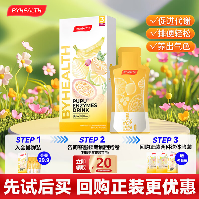 BYHEALTHpupu酵素饮便秘清肠排宿便排毒美白抗氧化果蔬西梅汁 酵素 3袋*1盒 【便携体验装】