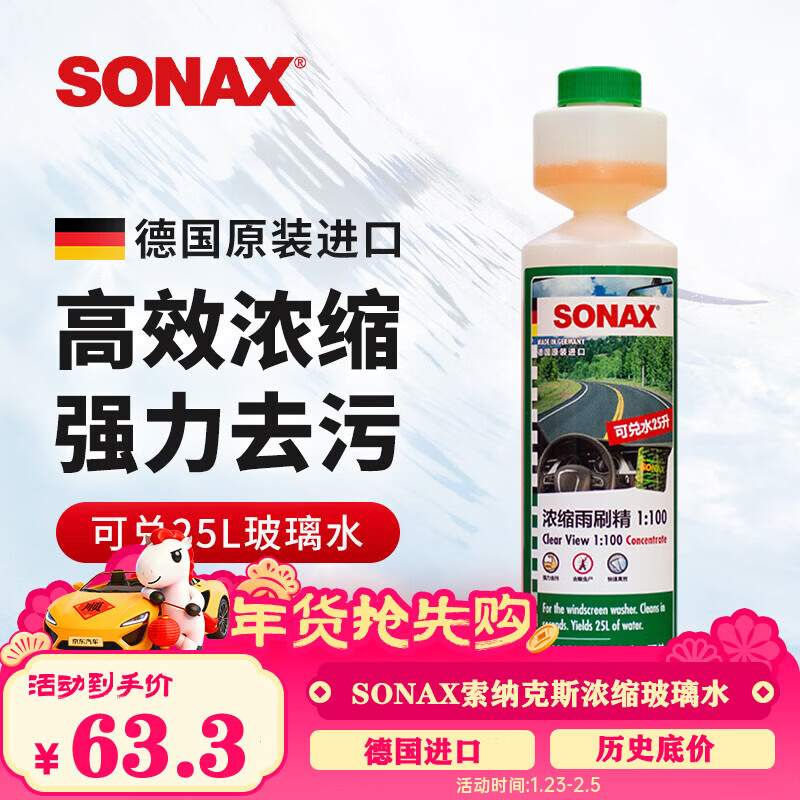 索纳克斯(SONAX)德国进口汽车玻璃水浓缩液去油膜虫胶雨刷精去污雨刮精前挡雨刮水 【2027年到期特价款】1:100经典清香250ml