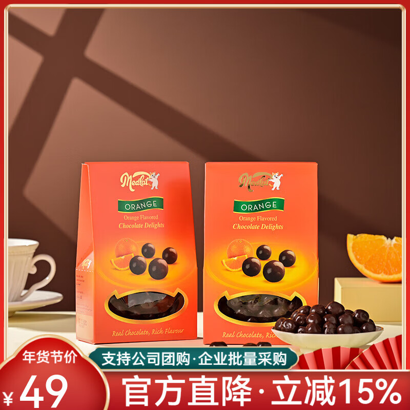 地中海猫(MedCat)土耳其进口坚果多味夹心黑巧克力豆休闲零食巧克力球生日伴手礼物 橙子味巧克力豆60g[2盒装]