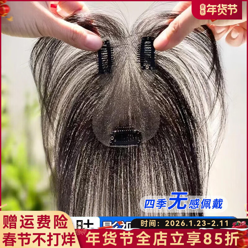 天空树云轻纱假发片女头顶补发片遮白发真人发丝蓬松增发量透气自然 升级无边-八字款【摩卡棕】 25cm
