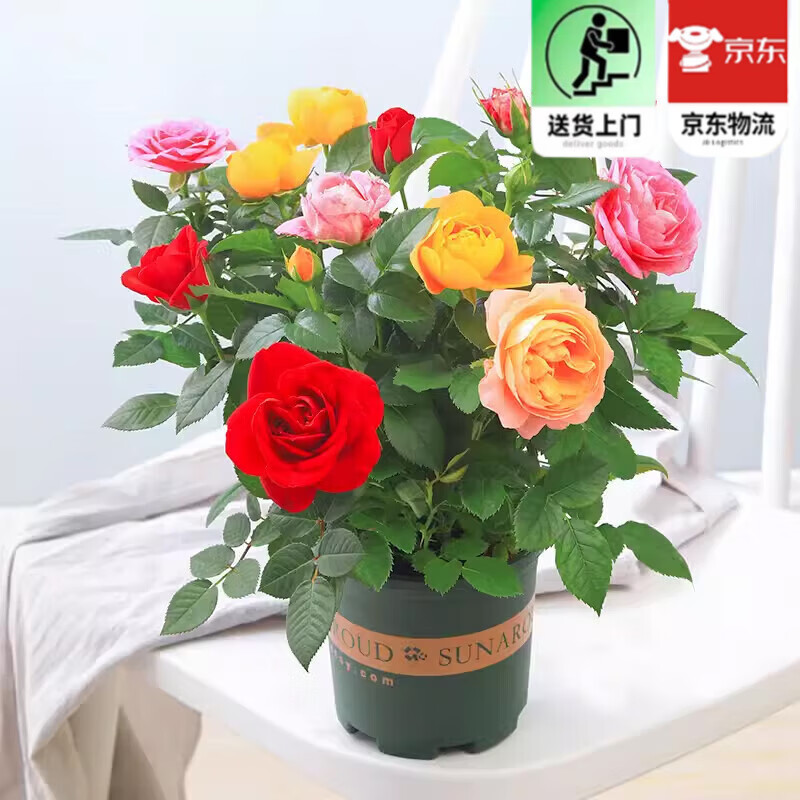 欧芽 多色玫瑰花盆栽阳台庭院四季开花植物大苗月季带花苞室内真花盆 混色玫瑰 带花苞(加仑盆) 含盆