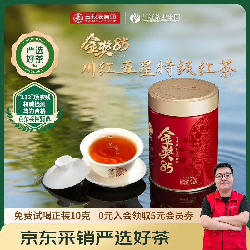 川红 买1发2特级金奖85红茶 四川特产橘糖香工夫非遗技艺茶自己喝 金奖85红茶五星新款125g