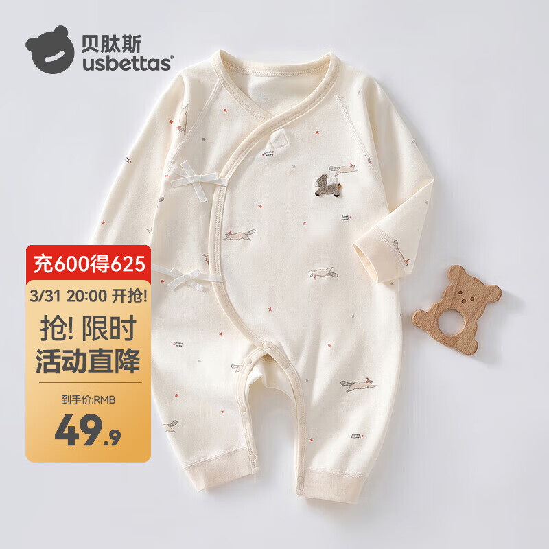 贝肽斯新生儿衣服春季款纯棉宝宝可爱家居服男童女童爬服哈衣婴儿连体衣 小小马 52cm