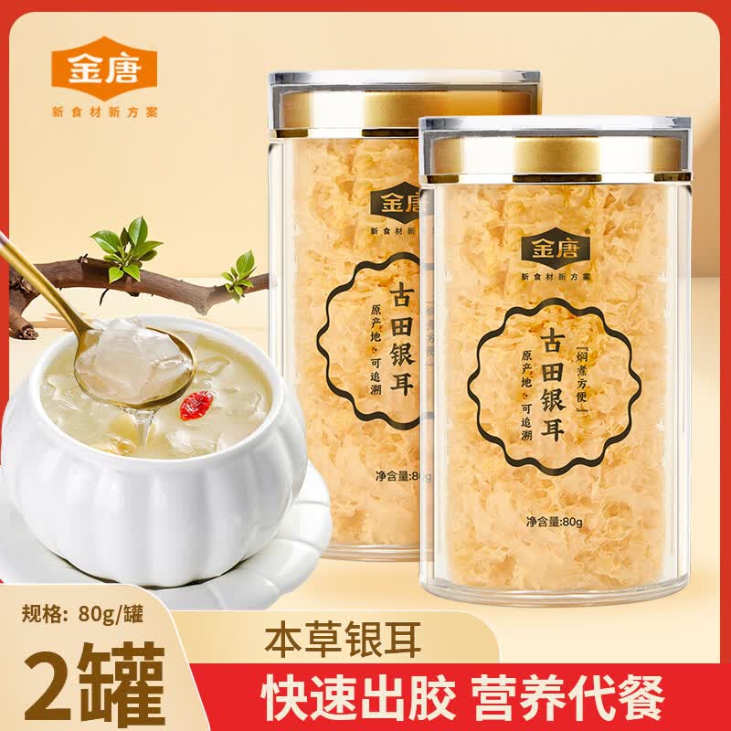 金唐古田银耳 有机银耳免泡免洗免炖煮糯耳干货冲泡银耳羹节日送礼盒 本草银耳80g*2罐