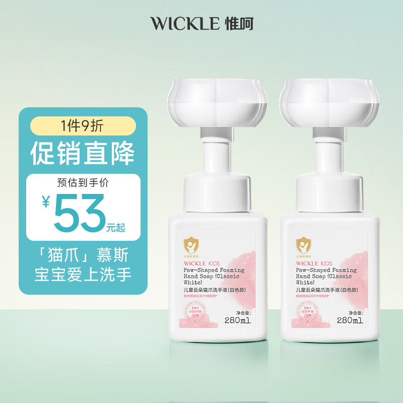 WICKLE宝宝专用泡泡洗手液儿童婴幼儿泡沫型婴儿猫爪洗手液 【白色款】儿童慕斯洗手液*2