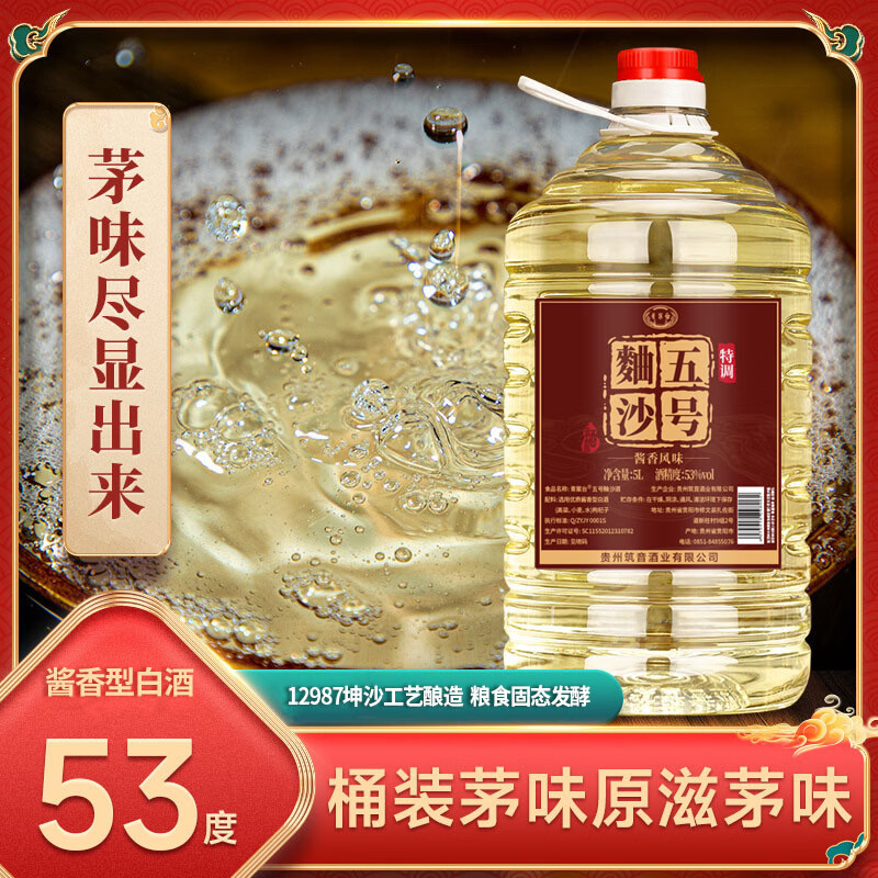青案台贵州纯粮食原浆高度53度桶装酒水桶装白酒泡药酒5L装 53%vol 5L 1桶 麯沙五号