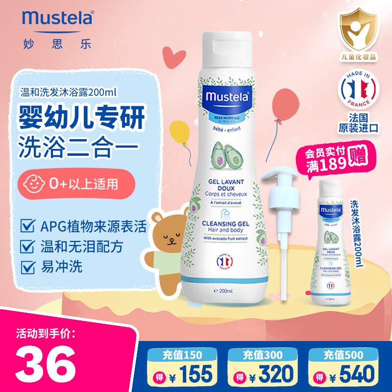 妙思乐儿童中性温和洗发水沐浴露二合一 婴幼儿新生宝宝易冲洗法国进口 【店长推荐】洗发沐浴露200ml