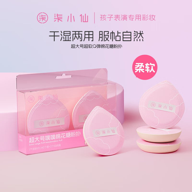 柒小仙儿童粉扑 彩妆蛋青少年学生元旦春节期末表演Q弹干湿两用水滴形 棉花糖大粉扑(一盒2个)(全国京快配送)