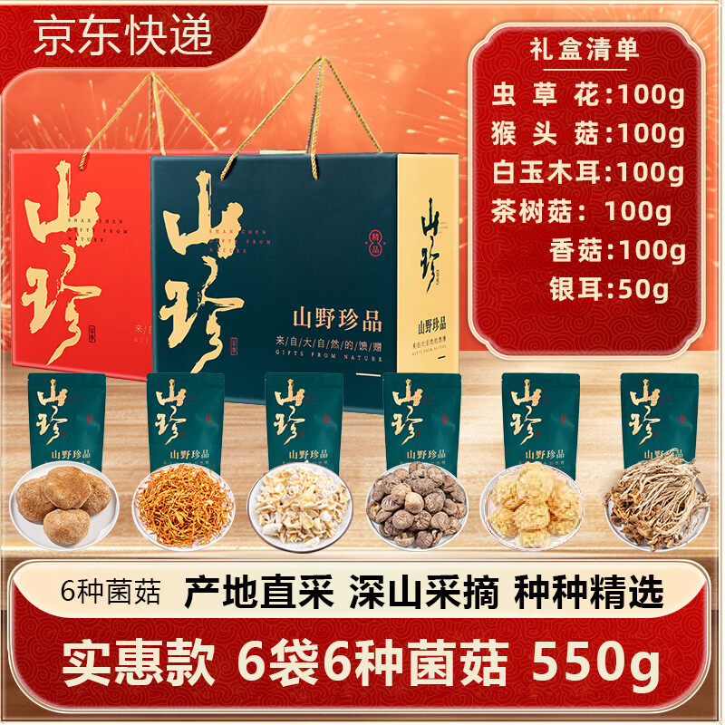 菌裕过年礼盒送礼佳品山珍礼盒菌菇组合干货送长辈礼物特产羊肚菌 550g E款6袋*6味菌菇礼盒 山珍菌菇礼盒【红色】