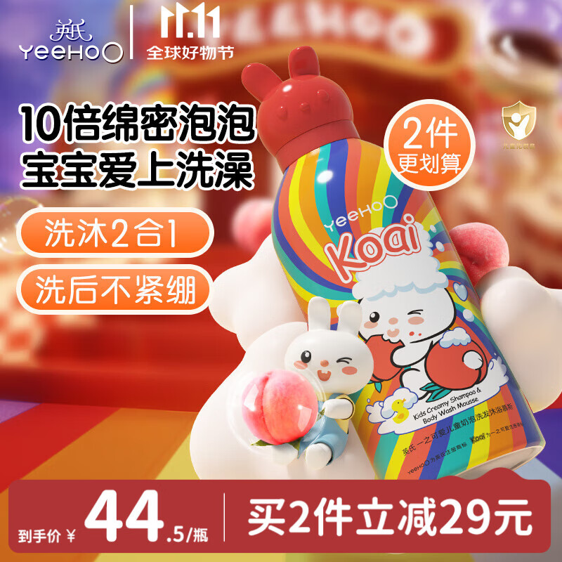 英氏儿童沐浴露洗发二合一婴儿沐浴露洗发水慕斯小奶泡350ml【拍2划算