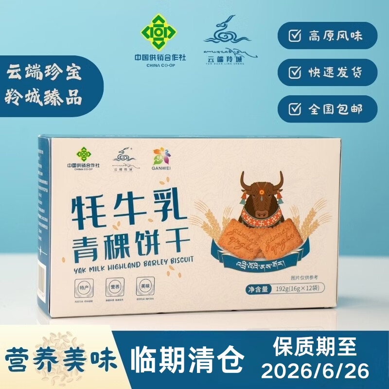 云端羚城牦牛乳青稞饼干粗粮营养代餐奶香零食【临期清仓】 192g/1盒