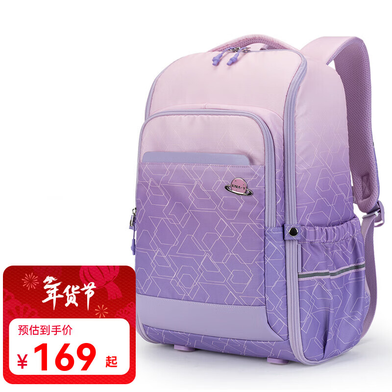 卡拉羊书包初中生减负休闲运动背包旅行出游大容量双肩包男女生 5098丨水粉科幻
