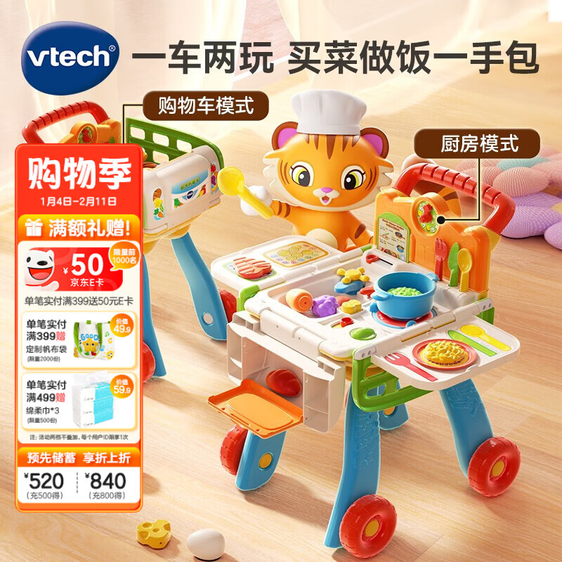 伟易达(Vtech)儿童玩具过家家厨房购物车做饭手推车角色扮演女孩男孩新年礼物 厨房购物车(橙)【2-5岁】