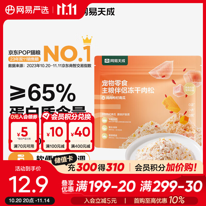 网易严选主粮伴侣冻干肉松 肉香浓郁 猫咪主粮搭配营养增肥发腮 鸡肉枸杞南瓜 40g