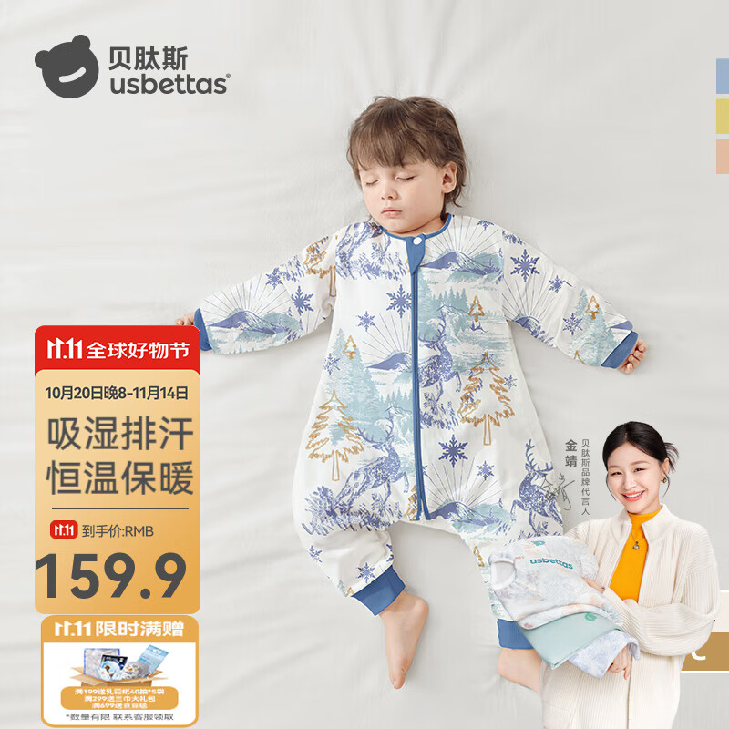 贝肽斯肽柔睡袋婴儿春秋冬季新生儿宝宝防踢被分腿感温大码防惊跳包被 春秋双层-感温(20-26℃)天鹿 L码 90-100cm(建议2-4岁)