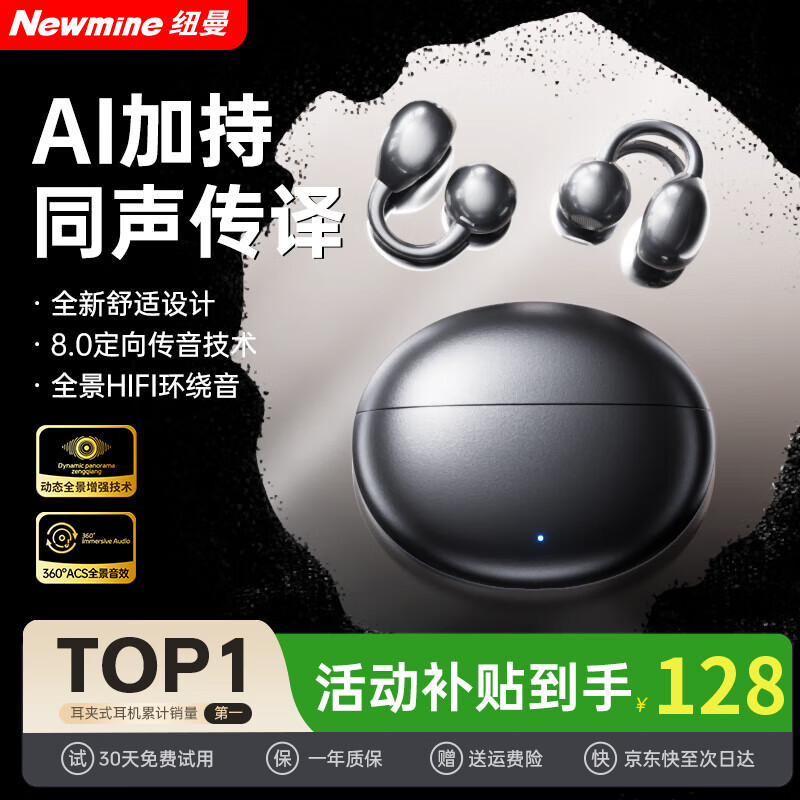 纽曼(Newmine)【2025最新款丨智能AI】蓝牙耳机无线骨传导概念耳夹式不入耳翻译同声传译运动跑步降噪超长续航 黑色丨AI大模型丨实时翻译