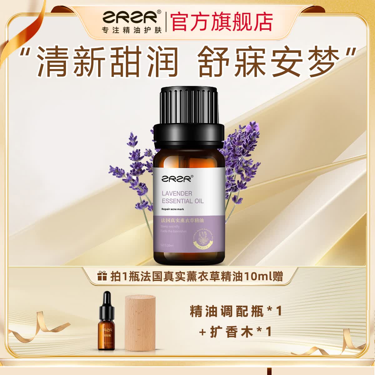 ZRZR法国薰衣草单方精油10ml面部精油脸部护肤淡化痘印淡化痘疤养肤 10ml【+调配瓶*1+扩香木*1】