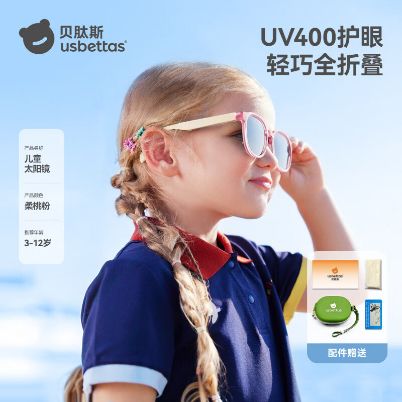 贝肽斯儿童墨镜防晒太阳镜偏光护眼不晕眩防紫外线男女宝宝可爱遮阳眼镜 柔桃粉-儿童款【使用年龄3-12岁】