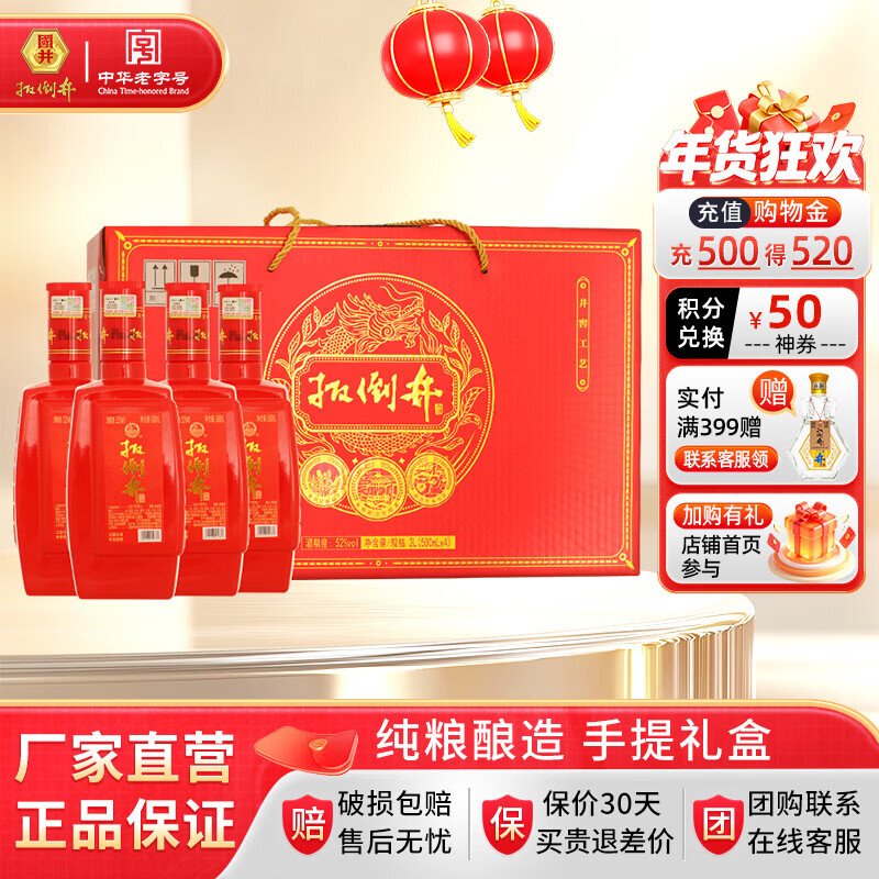 扳倒井白酒 52度珍品礼盒 纯粮酿造浓香型白酒 手提礼盒装送礼自饮白酒 52度 500mL 4瓶