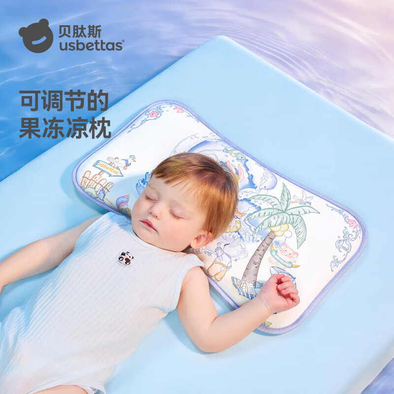 贝肽斯婴儿枕头0到6个月以上宝宝夏季冰丝凉枕儿童透气吸汗凉感枕 萌宠乐游 50x30cm