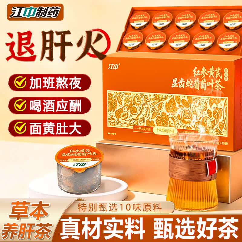 江中黄芪黄精红参枸杞护肝熬夜红枣去火肝气小罐茶玫瑰花甘草 一盒【体验装】