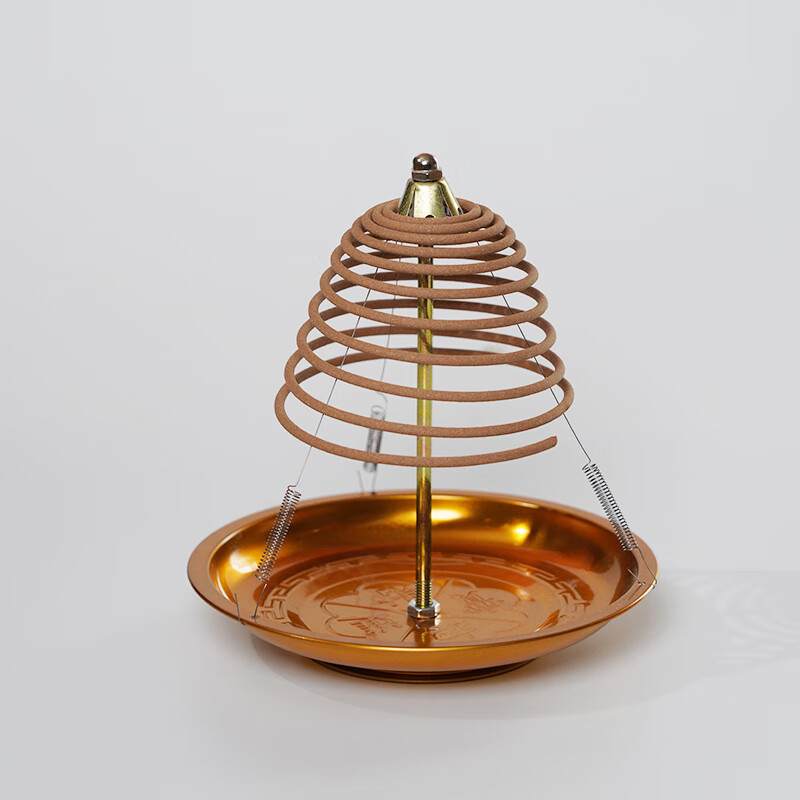 普云12小时大盘香檀香沉香艾草香桂花香熏香持久留香家用室内供佛香薰 12小时金色简易盘香架(只发香盘)